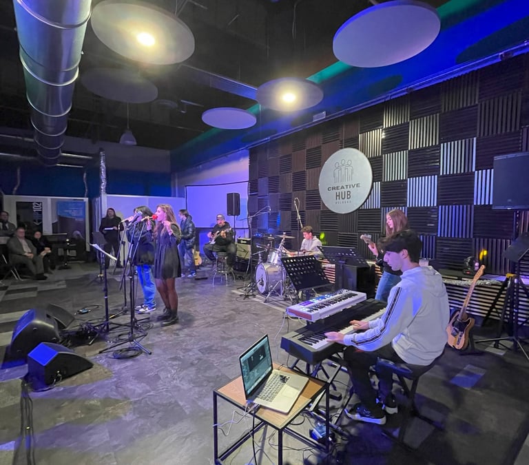sessioni di musica d'insieme regolari: suonerai in lezioni di gruppo, band e progetti collettivi dove imparerai a dialogare musicalmente, a sviluppare il tuo ascolto e a trovare il tuo spazio creativo all'interno di formazioni diverse, un'abilità fondamentale per ogni musicista professionista;